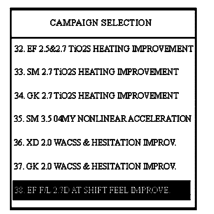 10. Select option "38. EF F/L 2.7D AT SHIFT FEEL IMPROVE" and press ENTER.
