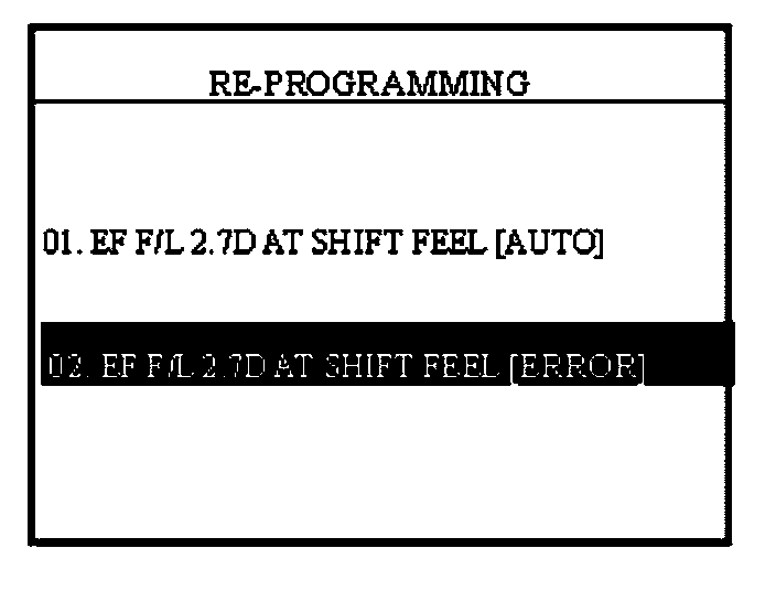 4. "REPROGRAM ERROR, PLEASE CHECK THE SYSTEM": In this case, you must reprogram manually after selecting the menu option "02. EF F/L 2.7D AT SHIFT FEEL [ERROR]".