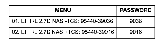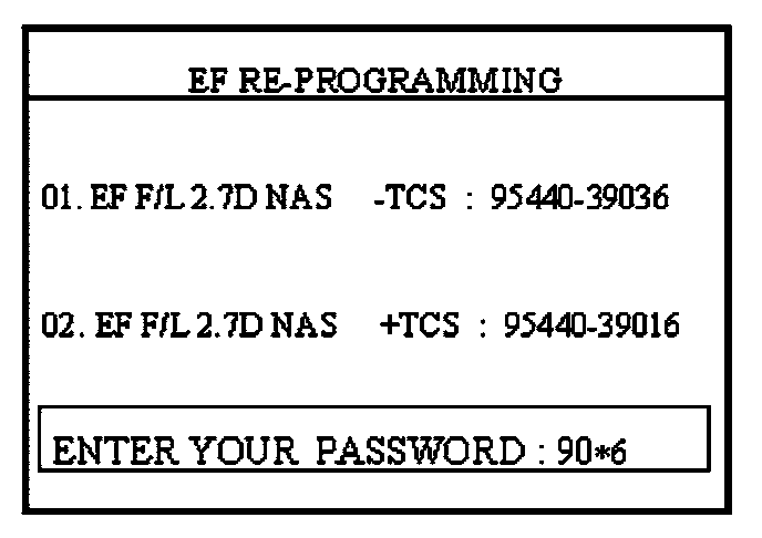 6. Select the correct password for the manual update mode which is correct for the vehicle specification by referring to the chart. Then press ENTER.