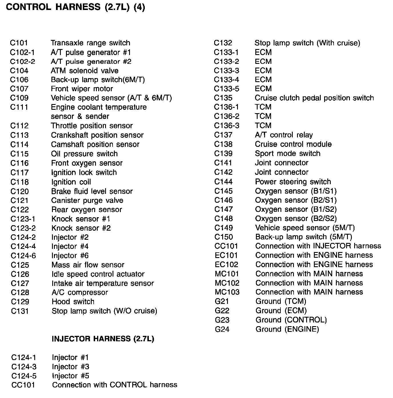 Control Harness Index: