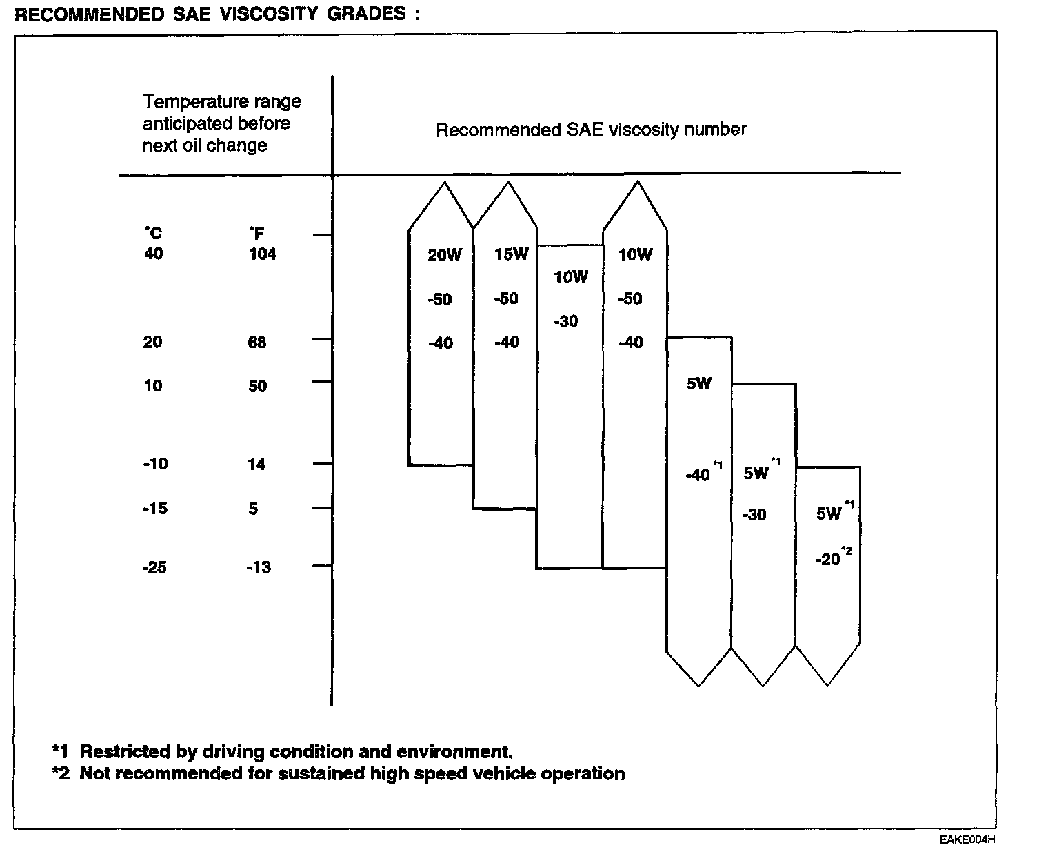 SELECTION OF ENGINE OILRecommended SAE Viscosity Grades: