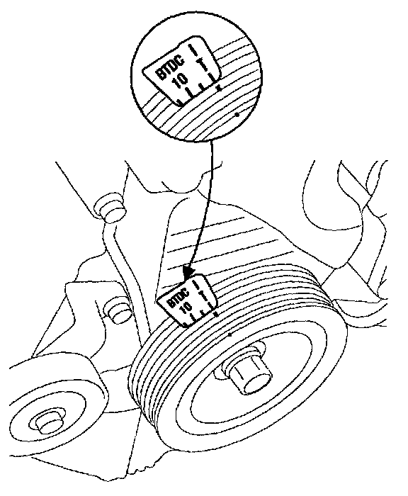 4. Turn the crankshaft pulley and align its groove with timing mark "T" of the timing belt cover.