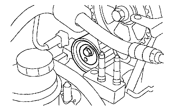 2. Give tension to timing belt rotating tensioner in arrow direction tool and set timing belt not to give slack to tensioner side.