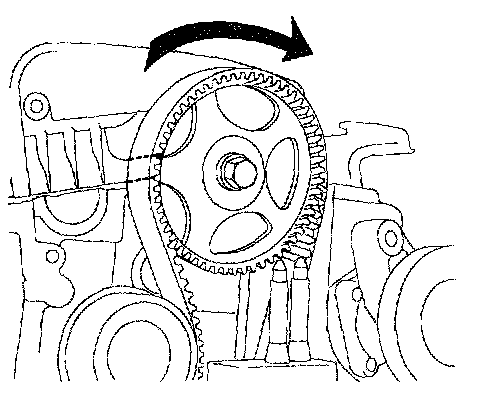 1. Rotate crankshaft in regular direction (clockwise view from front) through angle equivalent to two teeth (18°) of the camshaft sprocket.