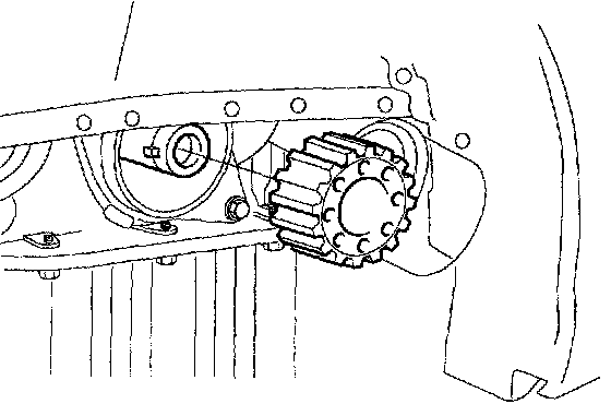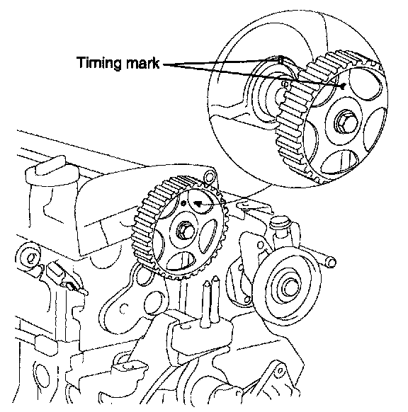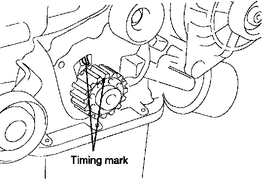10. Turn the crankshaft two turns in the operating direction (clockwise) and realign crankshaft sprocket and camshaft sprocket timing mark.