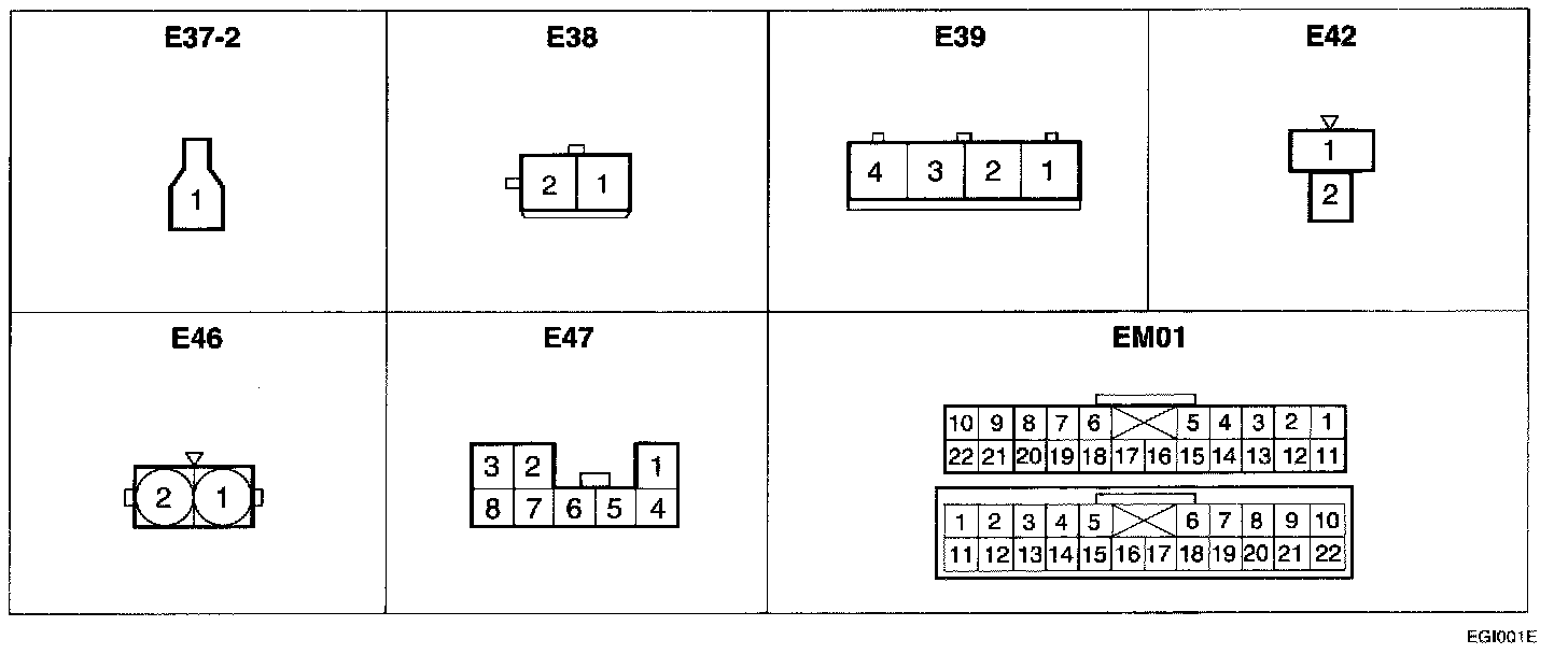 This shows the cavity or terminal locations in all the multi-pin connectors shown in the schematic diagrams. It will help you to locate check points, together with the wire colors and terminal numbers in the schematic. The configuration drawings show the connector view as seen from a component after the harness connector has been disconnected. When more than one connector is connected to a component, the connectors are all shown together. Both halves of in-line connectors are shown together.