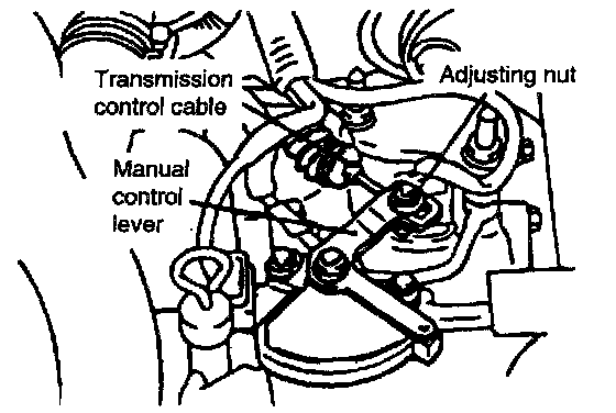 2. Loosen the control cable to the manual control lever coupling nut to free the cable and lever.