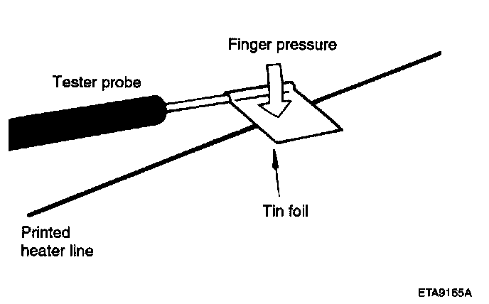 CAUTION: Wrap tin foil around the end of the voltmeter test lead to prevent damaging the heater line. Apply finger pressure on the tin foil, moving the tin foil along the grid line to check for open circuits.