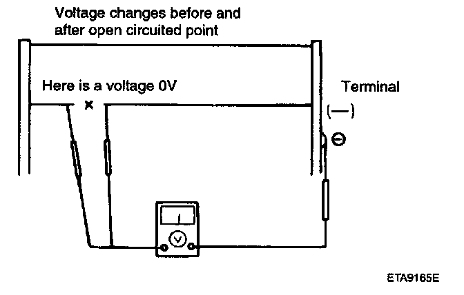 4. To check for open circuits, slowly move the test lead in the direction that the open circuit seems to exist. Try to find a point where a voltage is generated or changes to 0 V The point where the voltage has changed in the open-circuit point.