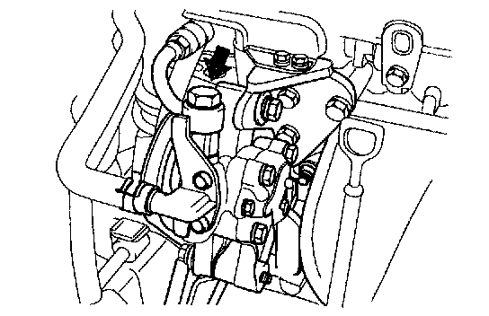 1. After draining the power steering fluid, remove the pressure hose mounting clamp.