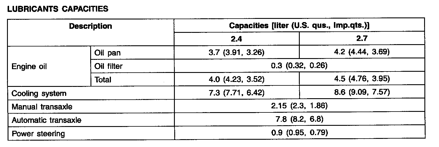 General Capacities Specifications
