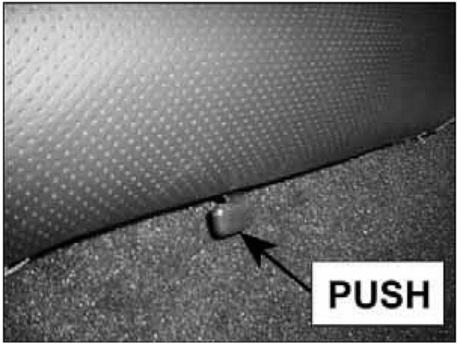 Elantra 5-door: Flip the seat cushion forward and remove the center bolt covering the fuel access door trim clip (passenger side cushion).