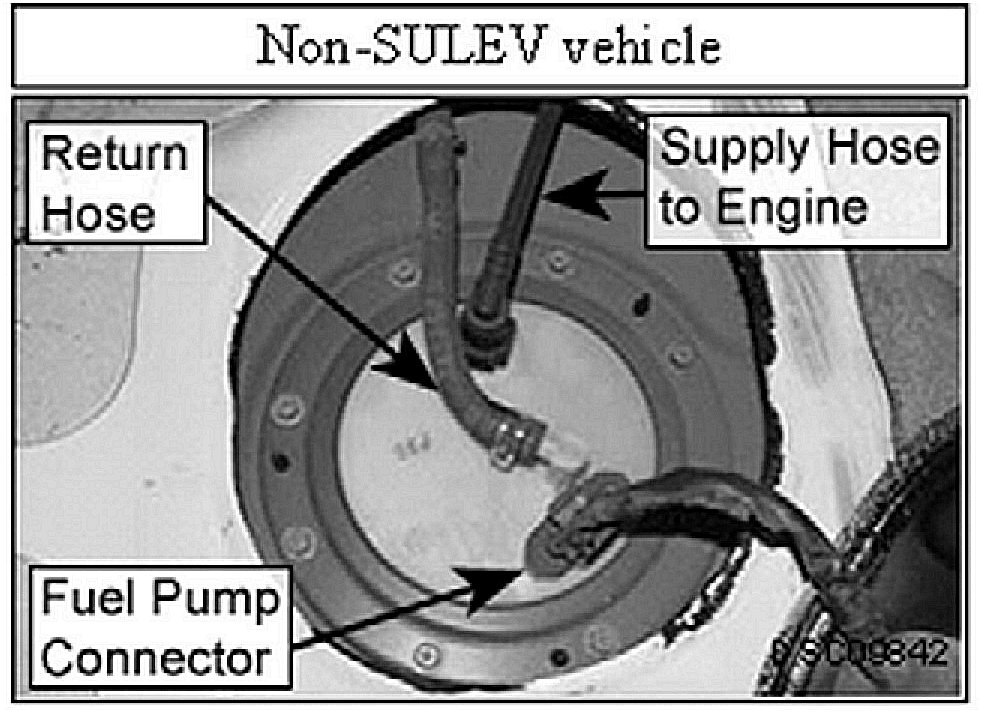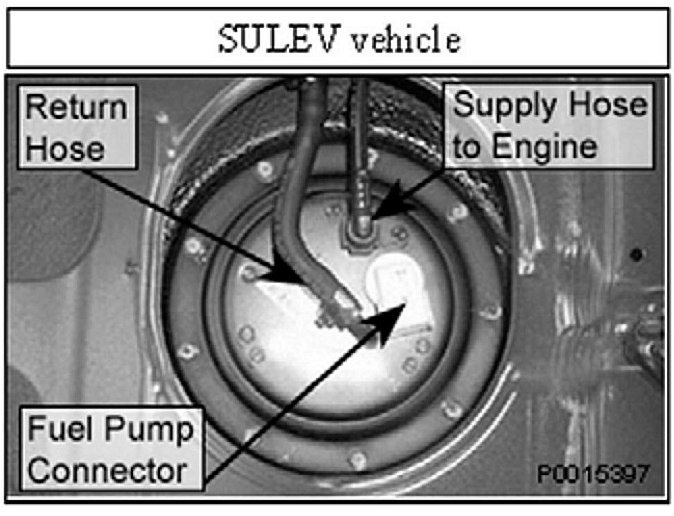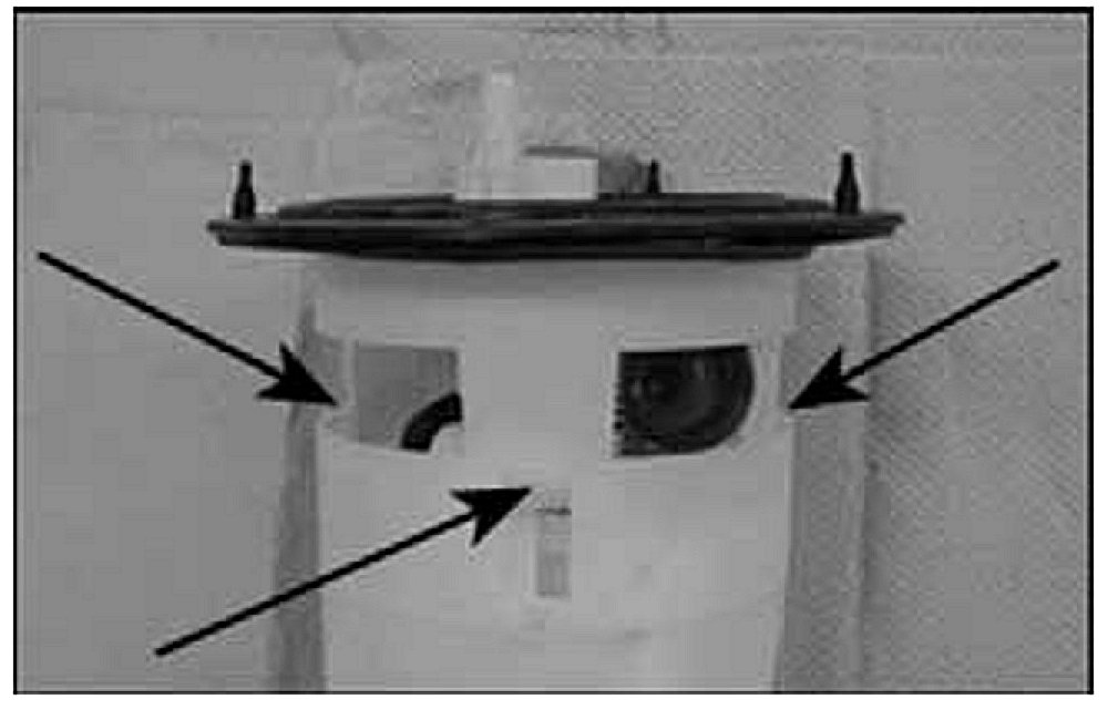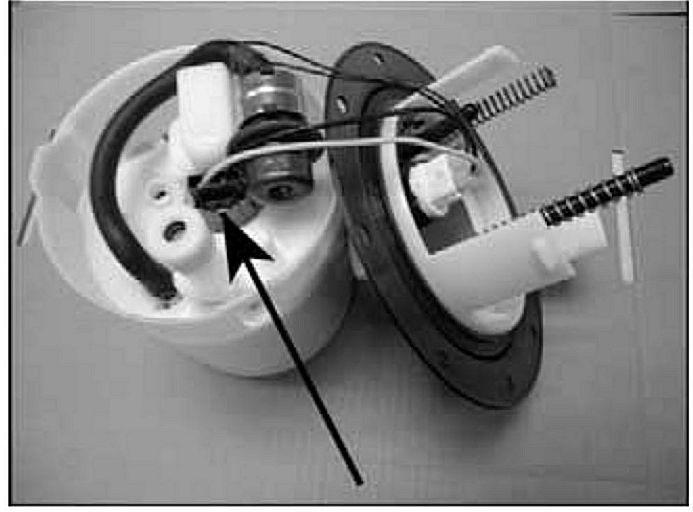 This picture shows the 2.7L fuel pump module separated into the three main parts for reference.