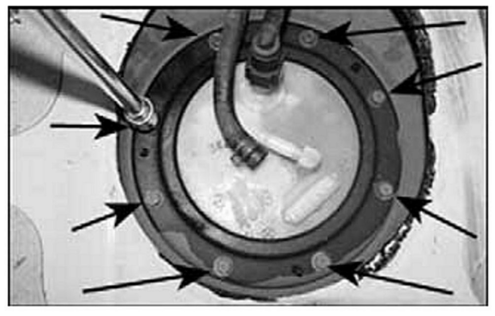 a. Reinstall the fuel pump assembly to the fuel tank. (Mounting bolt torque specification = 18-26 lb-inch)