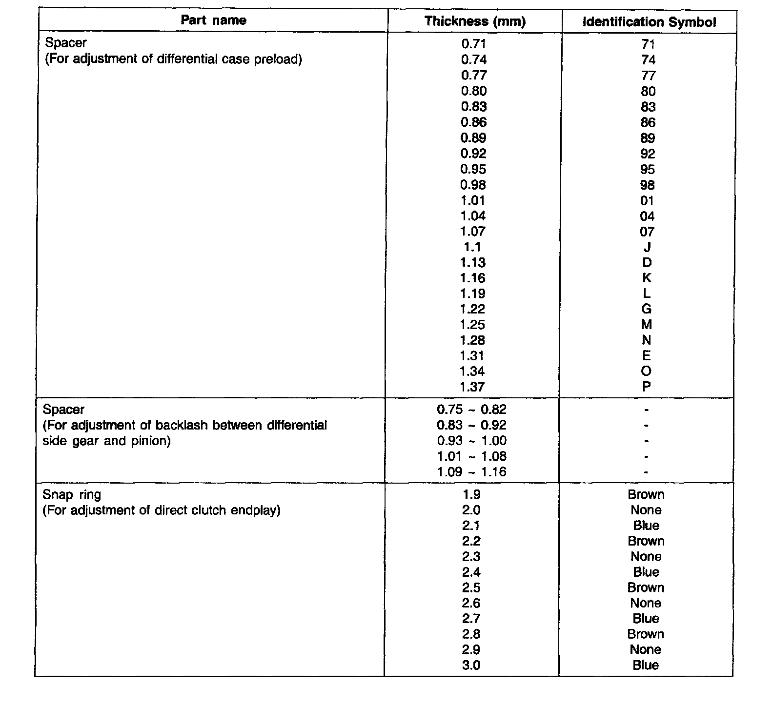 SNAP RING FOR ADJUSTMENT AND SPACER Part 2: