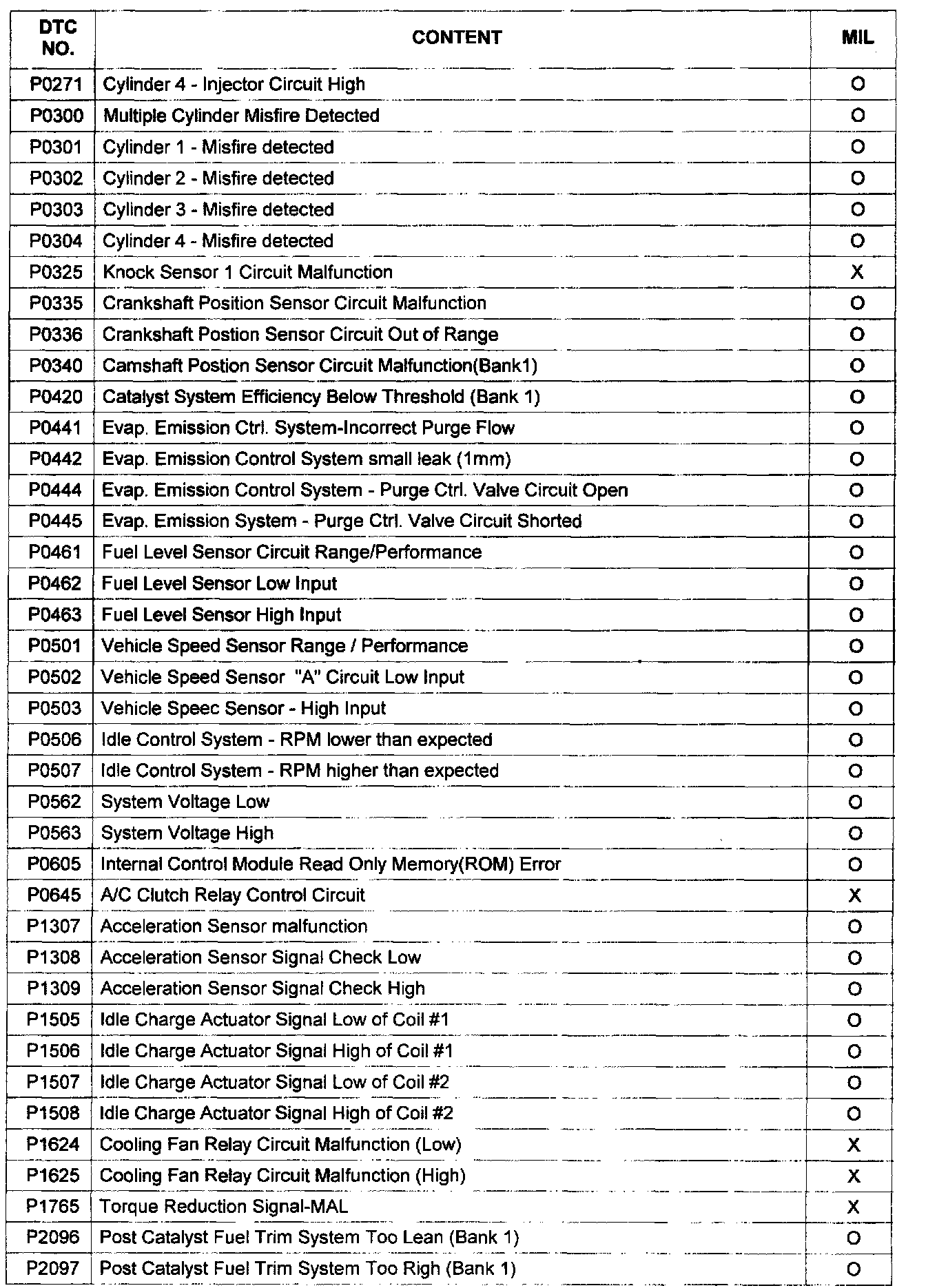 X: MIL OFF & Fault Code Memory