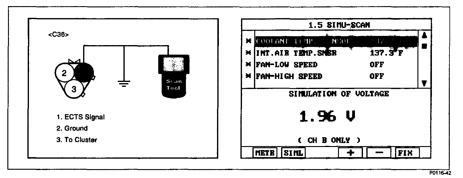 5. Verify ECTS voltage to change while raising or lowering simulation voltage with scan tool within 0.5 - 3.5 V