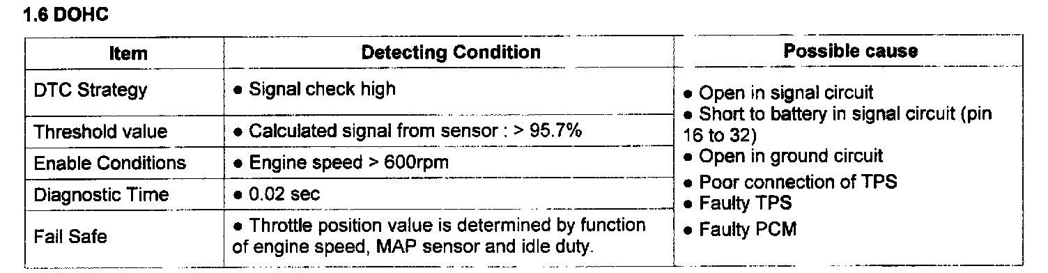- Possible cause: Open or short between terminal 16 of PCM and Terminal 1 of TPS