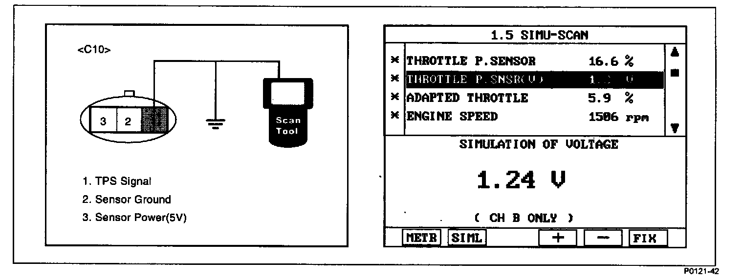 5. Verify TPS voltage to change while raising or lowering simulation voltage with scan tool within 0.5 - 3.5 V