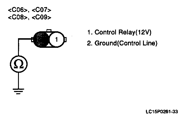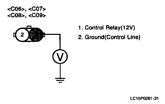 - Open circuit or short circuit to chassis ground between INJ harness connector and control relay.