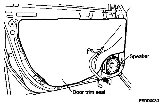 3. Remove the door trim seal, speaker, and connector.