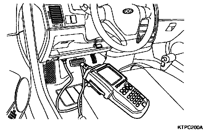 2. After connecting keyless adapter to the multi purpose check connector (10 pins) beside data link connector in driver side crash pad lower panel, turn the power on hi-scan.