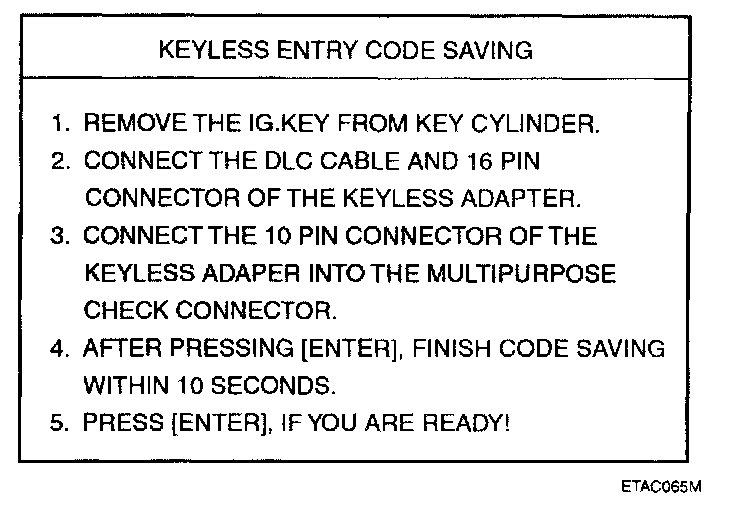 5. After removing the ignition key from key cylinder, push "ENTER" key to proceed to the next mode for code saving.