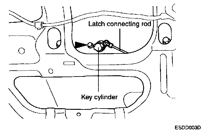 Disconnect the latch connecting rod, loosen the mounting bolt and then remove the key cylinder.