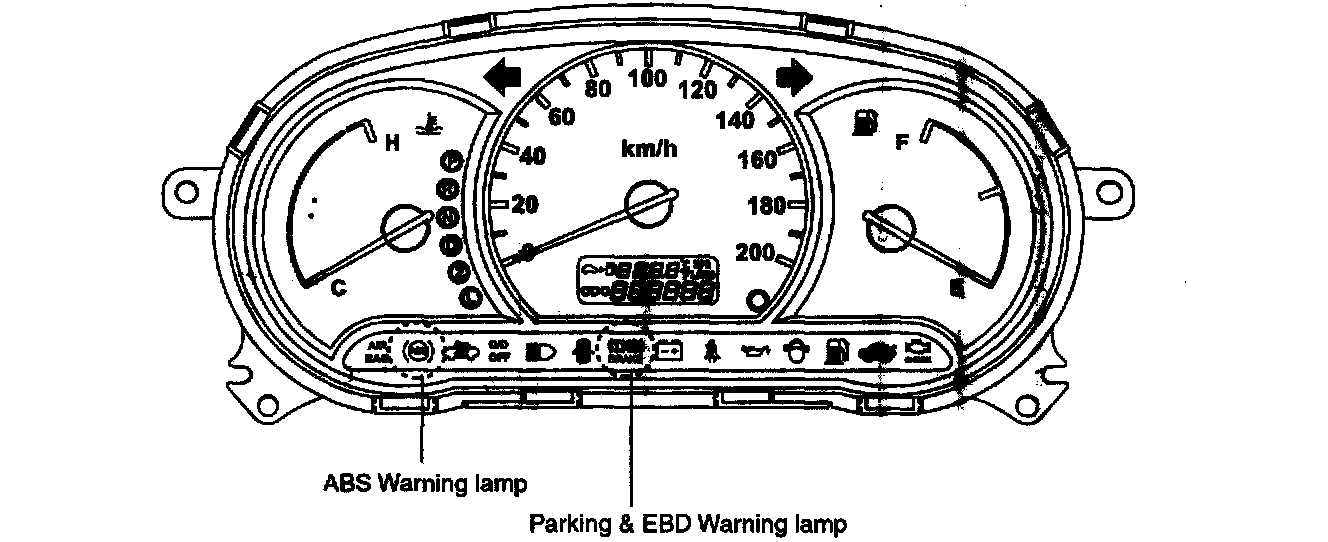 The active EBD warning lamp module indicates the operating condition of the EBD. However, in case the parking brake switch is turned on, the EBD warning lamp is always turned on regardless of EBD functions.