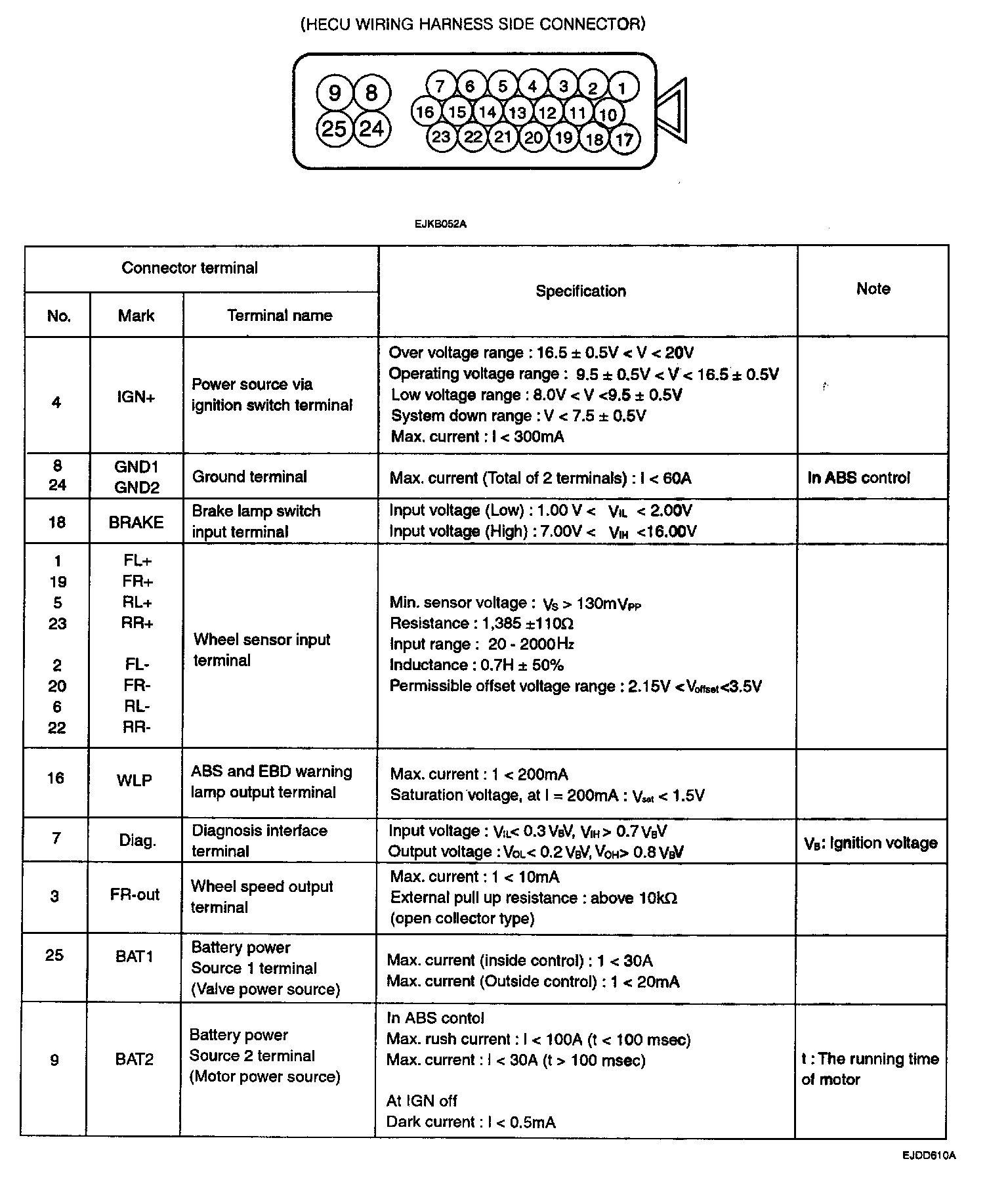Pinout Values and Diagnostic Parameters