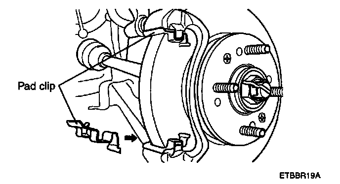 CAUTION: Do not depress the brake pedal while disassembling the pads.