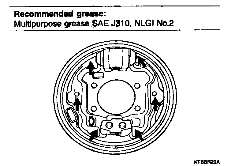 - Shoe and backing plate contact surfaces.