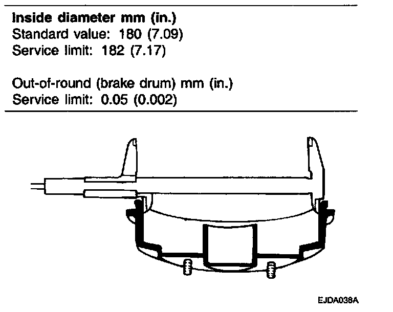 INSPECTION1. Measure the inside diameter of the brake drum. Check the runout of the brake drum by using a dial indicator.