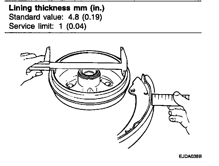 2. Measure the brake shoe lining thickness.