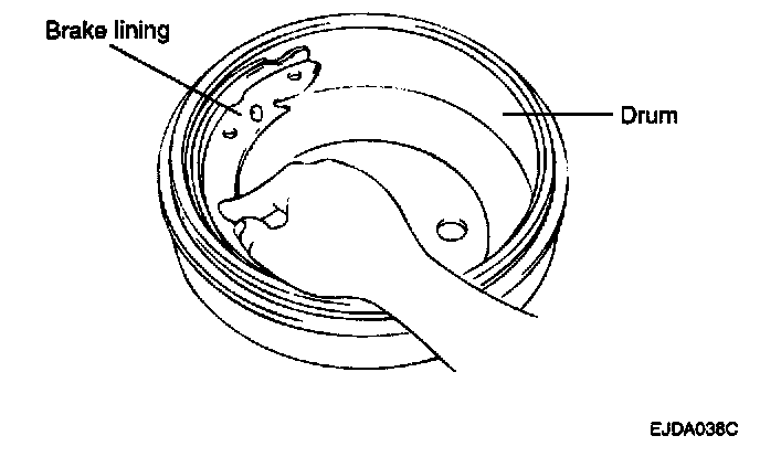 3. Inspect the brake lining and drum for proper contact.