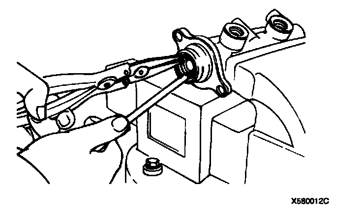^ Be careful not to bend or damage the brake lines when removing the master cylinder.