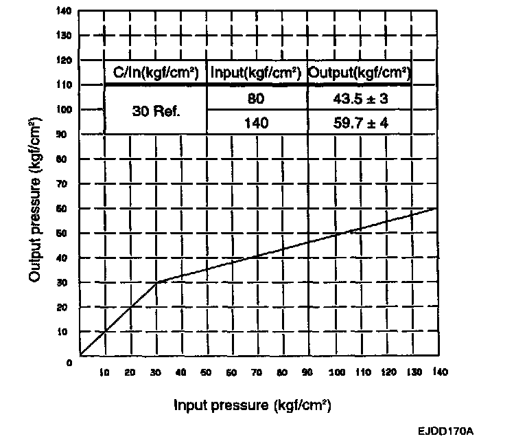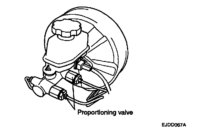 3. With the brakes applied, measure the input pressure and the output pressure. If the measured pressures are within the specified range, the proportioning valve is good.