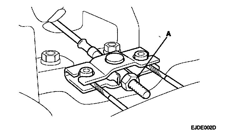 4. Tighten the adjusting nut (A) until the parking brakes drag slightly when the rear wheels are turned.