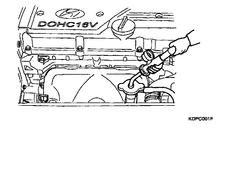 NOTE: 1. Radiator coolant may be extremely hot. Do not open me system because hot, or scalding water could gush out causing personal injury. Allow the vehicle to cool before servicing this system.