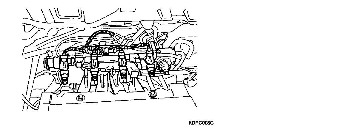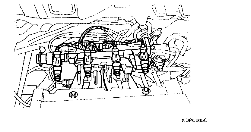 CAUTION: Be careful not to drop the injectors when removing the delivery pipe.