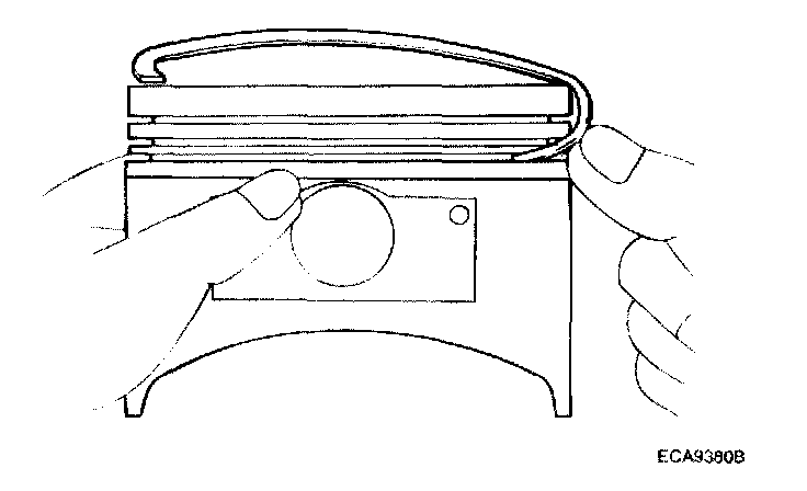 2. Check each piston ring for breakage, damage and abnormal wear. Replace the defective rings.
