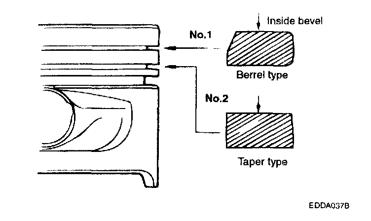 3. When replacing the ring without correcting the cylinder bore, check the gap with the ring situated at the low part of cylinder that is less worn out.