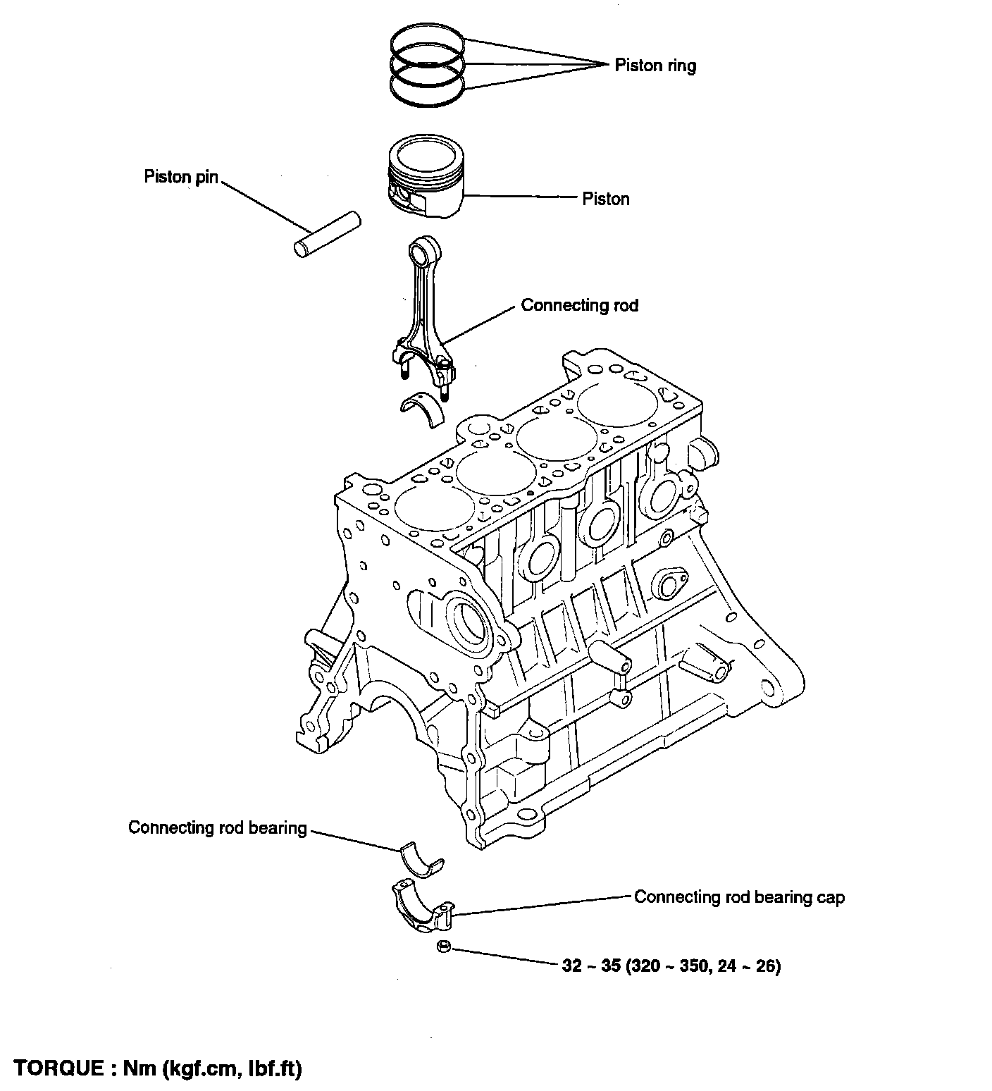 Connecting rod cap nut: ...........32 - 35 Nm (320 - 350 kg-cm, 24 - 26 ft. lbs.)