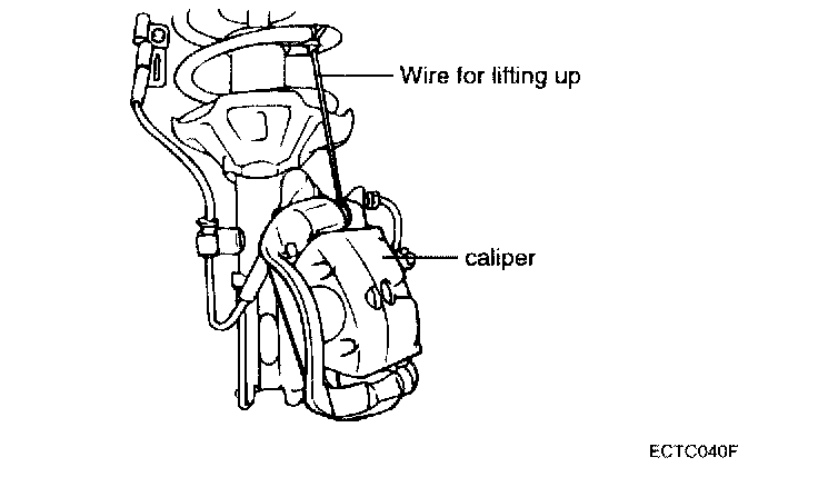 22. Remove the caliper from the knuckle and hang the Hint from the front rim with wine