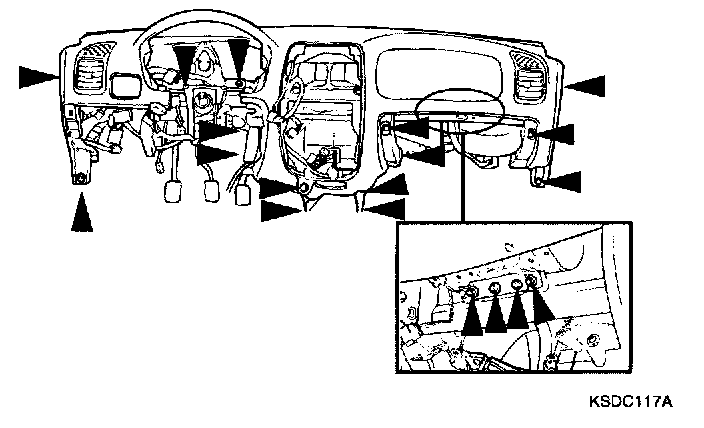 8. After loosening the main crash pad mounting bolts, remove the main crash.