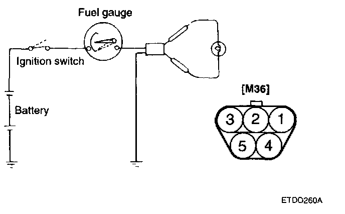 3. Turn the ignition switch to the ON, and then check that the bulb lights up and the fuel gauge needle moves to full.