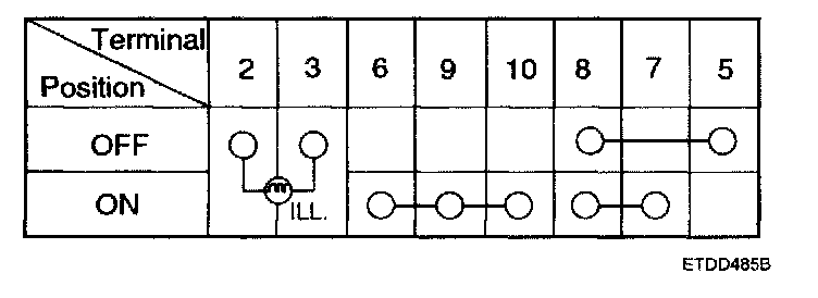 3. Operate the switch and check for continuity between terminals with an ohmmeter.