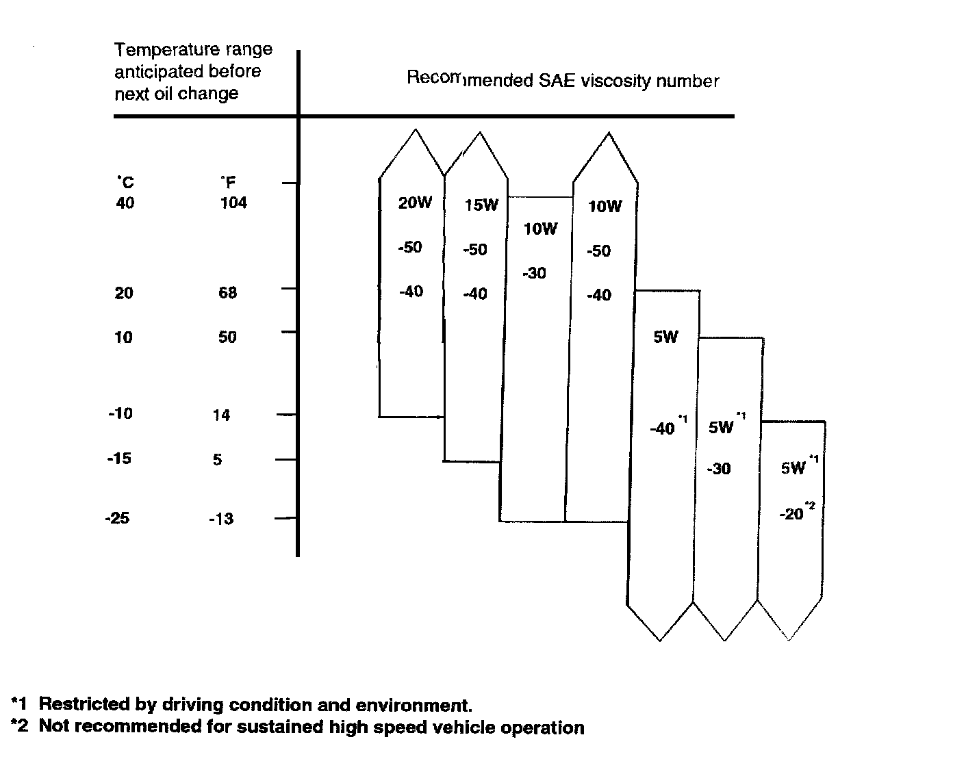 Recommended API classification: SH OR ABOVE SO Recommended SAE viscosity grades: