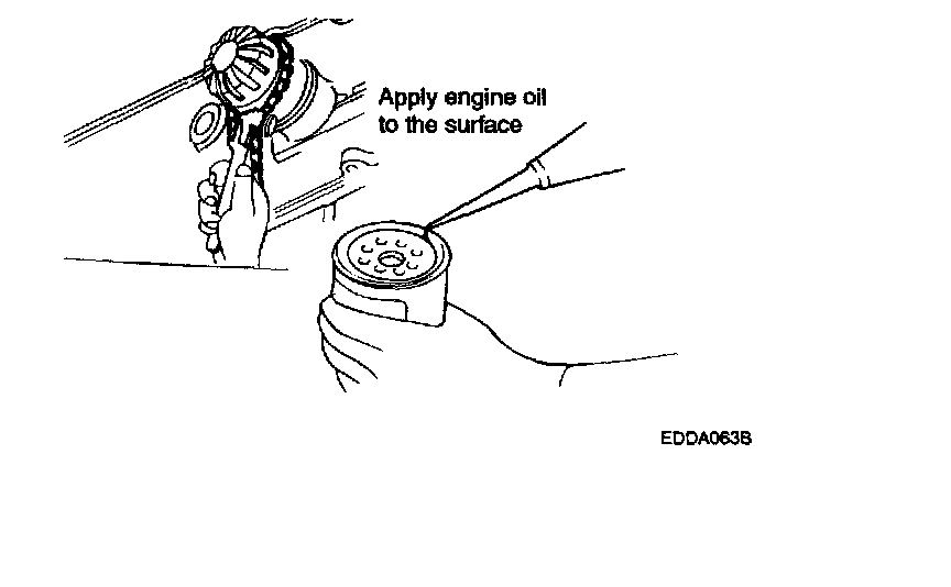 2. Before installing the new oil filter on the engine, apply clean engine oil to the surface of the rubber gasket.
