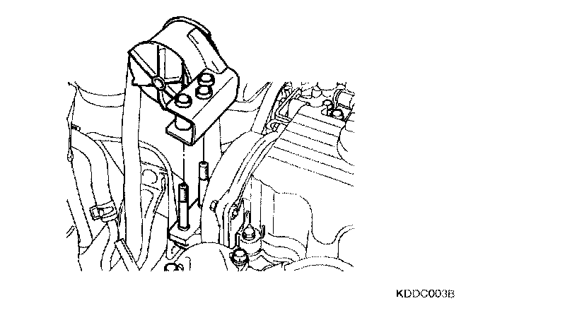 18. Install the water pump pulley and engine support bracket.